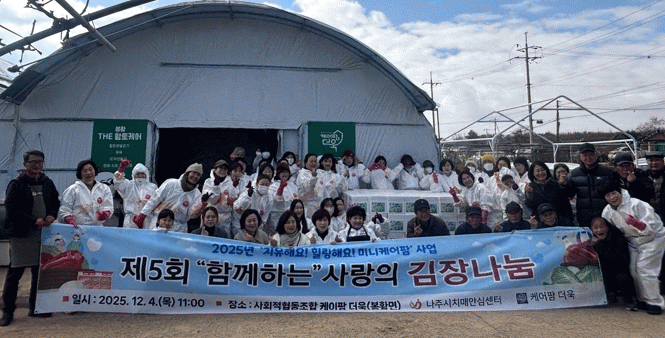 ³ªÁÖ½ÃÄ¡¸Å¾È½É¼¾ÅÍ ÇÁ·Î±×·¥ Âü¿©ÀÚµéÀÌ Á÷Á¢ Àç¹èÇÑ ¹èÃß·Î ±èÄ¡¸¦ ´ã°¡ Ãë¾à°èÃþ 120°¡±¸¿¡ Àü´ÞÇß´Ù.