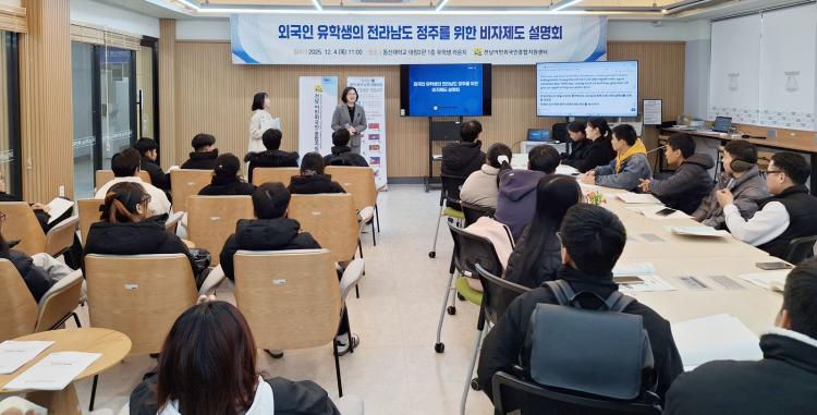 ´õºÒ¾î ¼³¸íȸ¿¡¼´Â Àü³² Áö¿ª ³»¿¡¼ À¯ÇлýµéÀÌ ½ÇÁ¦·Î Ȱ¿ëÇÒ ¼ö ÀÖ´Â ´Ù¾çÇÑ Áö¿ø ü°èµµ ÇÔ²² ¾È³»Çß´Ù. Áö¿ª »ê¾÷ ÇöȲ°ú ¿¬°èÇÑ ÀÏÀÚ¸® Á¤º¸´Â ¹°·Ð, Á¤Âø Ãʱ⠺δãÀ» ´ú¾îÁÖ±â À§ÇÑ ÁÖ°Å¡¤»ýȰ Áö¿ø Á¤Ã¥, ÁöÀÚü³ª °ü°è±â°ü¿¡¼ ¿î¿µÇÏ´Â ÀåÇС¤Ãë¾÷ ¿¬°è ÇÁ·Î±×·¥ µîÀÌ »ó¼¼È÷ ¼Ò°³µÇ¾ú´Ù. ¾Æ¿ï·¯ ¿Ü±¹ÀÎ À¯Çлý Àü´ã »ó´ã ⱸ¸¦ ÅëÇØ ºñÀÚ, Áø·Î, »ýȰ ¹®Á¦ µî °³º°Àû ¾î·Á¿òÀ» ÇØ¼ÒÇÒ ¼ö ÀÖ´Â ÀýÂ÷µµ ¾È³»ÇÏ¿©, À¯ÇлýµéÀÌ Àü³²¿¡¼ ¾ÈÁ¤ÀûÀ¸·Î Çо÷°ú Áø·Î¸¦ À̾ ¼ö ÀÖ´Â ½ÇÁúÀûÀÎ Áö¿ø ±â¹ÝÀ» Á¦½ÃÇß´Ù.