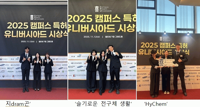 9ÀÏ Àü³²´ë¿¡ µû¸£¸é, ÈÇаøÇкΠÇлýµé·Î ±¸¼ºµÈ ¡®ÁöDRAM°ï¡¯ ÆÀ(Áöµµ±³¼ö ¹ÚÁ¾Çö)ÀÌ Áö½ÄÀç»êûÀÌ ÁÖÃÖÇϰí Çѱ¹¹ß¸íÁøÈïȸ¿Í 4°³ À¯°ü±â°üÀÌ °øµ¿ ÁÖ°üÇÑ 2025 Ä·ÆÛ½º ƯÇã À¯´Ï¹ö½Ã¾Æµå¿¡¼ ¿ì¼ö»óÀ» ¼ö»óÇß´Ù.