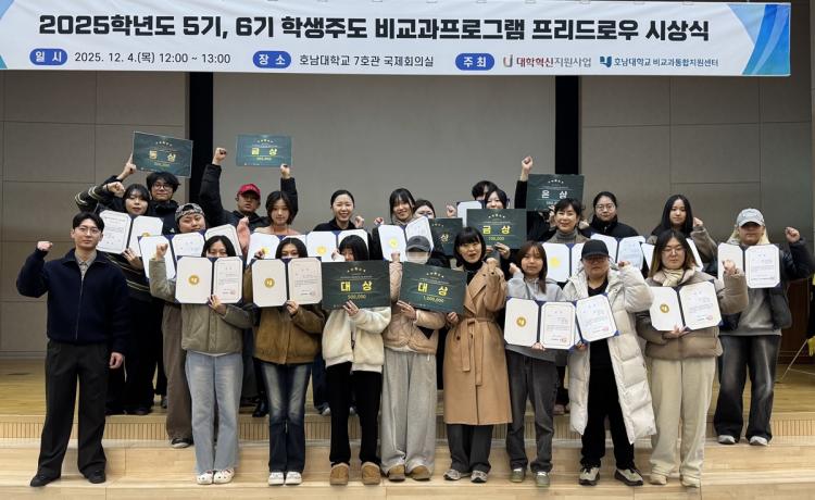 [ÅåÅå´º½º]È£³²´ëÇб³ ºñ±³°úÅëÇÕÁö¿ø¼¾ÅÍ(¼¾ÅÍÀå ÁÂÇö¼÷)´Â 12¿ù 4ÀÏ ³· 7È£°ü ±¹Á¦È¸Àǽǿ¡¼ 2025Çг⵵ ÇÁ¸®µå·Î¿ì 5¡¤6±â ÇлýÁÖµµ ºñ±³°úÇÁ·Î±×·¥ ½Ã»ó½ÄÀ» °®°í, ÇлýµéÀÌ ½º½º·Î ±âȹÇÏ°í ¿î¿µÇÑ ºñ±³°ú ÇÁ·Î±×·¥ÀÇ ¼º°ú¸¦ °øÀ¯Çß´Ù.