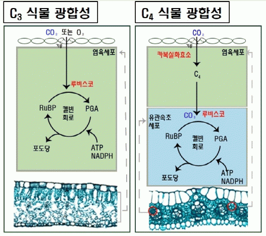 C4 ½Ä¹°Àº ÀϹÝÀûÀÎ C3 ½Ä¹°º¸´Ù ÀÌ»êÈź¼Ò¸¦ °íÁ¤ÇÏ´Â ´É·ÂÀÌ ¶Ù¾î³ª¸ç, °í¿Â ȯ°æ¿¡¼µµ ±¤ÇÕ¼º È¿À²ÀÌ ½±°Ô ÀúÇϵÇÁö ¾Ê´Â Ư¼ºÀ» °¡Áø´Ù. ÀÌµé ½Ä¹° ¶ÇÇÑ ¿ì¸®³ª¶ó ÇØ¾È°ú »ç±¸(¸ð·¡¾ð´ö)°¡ ¹ß´ÞÇÑ Áö¿ª¿¡ ÁÖ·Î ºÐÆ÷Çϸç, °ÇÑ ÇÞºû, ¿°ºÐ, ¹Ù¶÷ µî ¿¾ÇÇÑ È¯°æ¿¡¼µµ ³ôÀº ź¼Ò °íÁ¤ È¿À²À» À¯ÁöÇϸç ÀûÀÀÇØ ¿Â Á¾µé·Î Æò°¡µÈ´Ù.