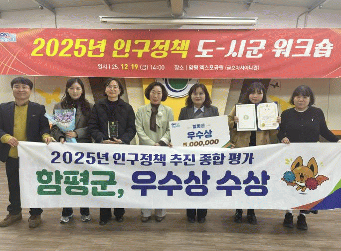 ÇÔÆò±ºÀº Àü³²µµ°¡ Áö³ 19ÀÏ ÇÔÆò¿¢½ºÆ÷°ø¿ø ±ÝÈ£¾Æ½Ã¾Æ³ª°ü¿¡¼ °³ÃÖÇÑ ¡®2025³â Àα¸Á¤Ã¥ Á¾ÇÕÆò°¡¡¯¿¡¼ ¿ì¼ö»óÀ» ¼ö»óÇß´Ù°í 22ÀÏ ¹àÇû´Ù.