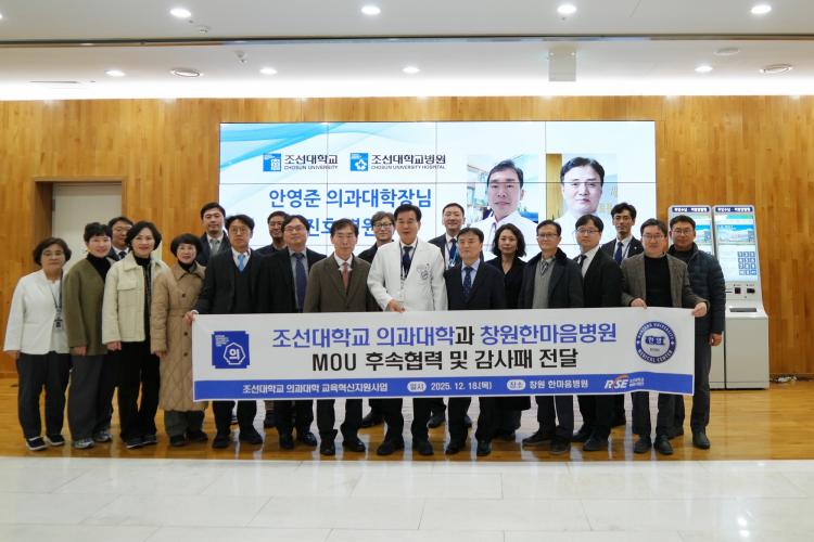 ¾È¿µÁØ Á¶¼±´ëÇб³ Àǰú´ëÇÐÀåÀº ¡°Ã¢¿øÇѸ¶À½º´¿ø°úÀÇ Çù·ÂÀº Çлý ±³À°ÀÇ ÁúÀ» ½ÇÁúÀûÀ¸·Î ³ôÀÌ´Â µ¥ Áß¿äÇÑ ¿ªÇÒÀ» ÇØ¿Ô´Ù¡±¸ç, ¡°±× Á߽ɿ¡¼ ¾Æ³¦¾ø´Â Áö¿øÀ» º¸³»ÁֽŠÇÏÃæ½Ä ÀÇÀå´Ô²² ±íÀº °¨»çÀÇ ¶æÀ» ÀüÇÑ´Ù¡±°í ¹àÇû´Ù.