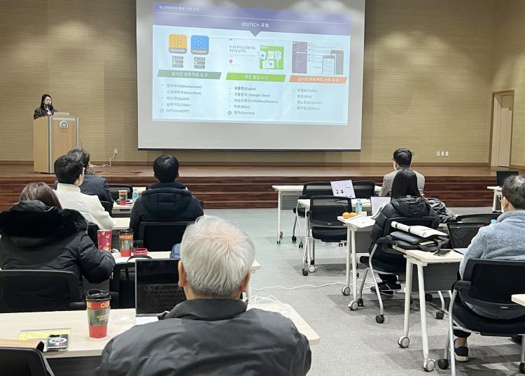 ¹Ú¼®ÀÏ ±³¼öÇнÀÀÌ·¯´×¼¾ÅÍÀåÀº ¡°ÃÖ±Ù AI¿Í ¿¡µàÅ×Å© Ȱ¿ë °ü·Ã ¿öÅ©¼óÀÌ Áõ°¡Çϰí ÀÖÁö¸¸, À̹ø ¿öÅ©¼óÀº ¿¡µàÅ×Å©¸¦ ¼ö¾÷ º¸Á¶ ¼ö´ÜÀÌ ¾Æ´Ñ ±³À° Çõ½ÅÀÇ Ã˸ÅÁ¦·Î Ȱ¿ëÇÒ ¼ö ÀÖ´Ù´Â Á¡¿¡¼ Àǹ̰¡ Å©´Ù¡±¸ç ¡°¾ÕÀ¸·Îµµ ±³¿øÀÇ ¼ö¾÷ Àü¹®¼º °È¿Í PBL°ú °°Àº Çлý Âü¿©Çü ¼ö¾÷ È®»êÀ» À§ÇØ Áö¼ÓÀûÀ¸·Î ³ë·ÂÇϰڴ١±°í ¹àÇû´Ù.