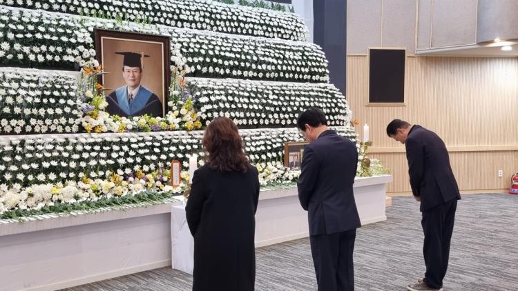 ¹Ú»ó°Ç È£³²´ëÇб³ ÀÌ»çÀåÀº À¯Á·À» ´ëÇ¥ÇØ¼ ¡°Ãß¿î ³¯¾¾¿¡µµ ¼³¸³ÀÚ´ÔÀÇ ºó¼Ò Áغñ¿Í Á¶¹®°´ ¸ÂÀÌ¿¡ Á¤¼ºÀ» ½ñ¾ÆÁØ ±³Á÷¿øµé¿¡°Ô ³Ê¹« °í¸¿´Ù¡±°í °¨»çÀÇ Àλ縦 ÀüÇÏ¸é¼ ¡°Çб³¼³¸³°ú ¹ßÀüÀ» À§ÇØ Çå½ÅÇϽм³¸³ÀÚ´ÔÀÇ ¸¶Áö¸· ±æÀ» ¹è¿õÇϱâ À§ÇØ Ã£¾ÆÁֽŠÁ¶¹®°´µé¿¡°Ô Á¶±ÝÀÇ ¼ÒȦÇÔµµ ¾øµµ·Ï ÇØ´Þ¶ó¡±°í ´çºÎÇß´Ù.