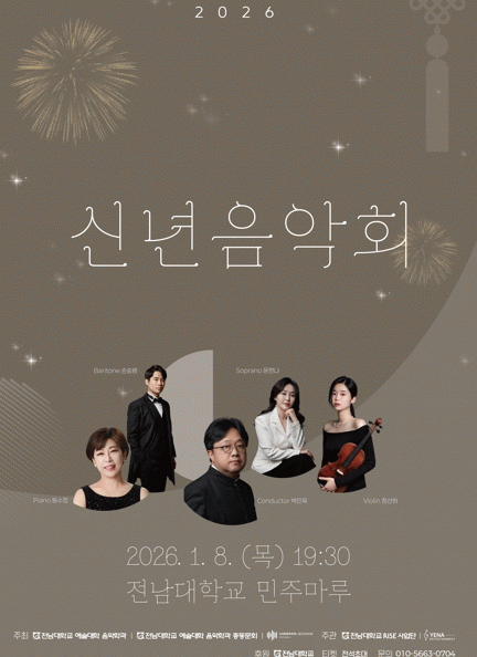 À̹ø ½Å³âÀ½¾Çȸ´Â »õÇØ¸¦ ¸Â¾Æ ±¤ÁÖ Áö¿ª¹Îµé¿¡°Ô À½¾ÇÀ» ÅëÇÑ ÀÀ¿ø°ú Èñ¸ÁÀÇ ¸Þ½ÃÁö¸¦ ÀüÇϱâ À§ÇØ ¸¶·ÃµÈ °ø¿¬À¸·Î, Àü³²´ëÇб³ Ãâ½ÅÀÇ ´ëÇ¥ ¿¹¼úÀεéÀÌ ÇÑÀÚ¸®¿¡ ¸ð¿© ±íÀÌ ÀÖ´Â ¿¬ÁÖ¸¦ ¼±º¸ÀÏ ¿¹Á¤ÀÌ´Ù.