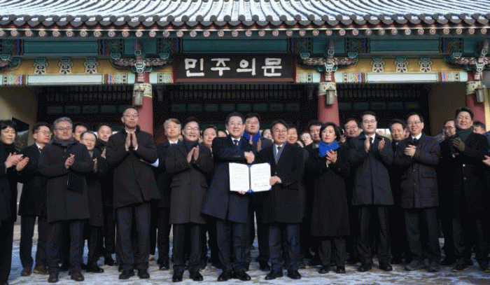 ƯÈ÷ ÀÌÀç¸í Á¤ºÎ¿¡¼ ÅëÇÕ ½Ã¡¤µµ¿¡ ´ëÇØ ¼¿ïƯº°½Ã¿¡ ÁØÇÏ´Â ÁöÀ§¿Í Á¶Á÷Ư·Ê¸¦ ºÎ¿©Çϰí, ±³ºÎ¼¼ Ãß°¡ ¹èºÐ ¹× °ø°ø±â°ü ¿ì¼± ÀÌÀü µî °ú°¨ÇÑ Àμ¾Æ¼ºê¸¦ °èȹÇϰí ÀÖ¾î, Áö±ÝÀ̾߸»·Î ±¤ÁÖ¡¤Àü³²ÀÌ ´ëÅëÇÕÀÇ ±æ·Î ³ª¾Æ°¥ ÀýÈ£ÀÇ ±âȸ¶ó°í º¸°í, À̹ø °øµ¿ ¼±¾ðÀ» ÅëÇØ ÅëÇÕÀ» Áï°¢ ÃßÁøÇϱâ·Î ÇÕÀÇÇß´Ù.