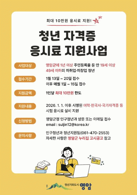 ÀÚ°ÝÁõ ÀÀ½Ã·á ½ÅûÀÏ ±âÁØ 1³â ÀÌ»ó ¿µ¾Ï±º¹ÎÀÎ ¹ÌÃë¾÷¡¤¹Ìâ¾÷ 19~49¼¼ û³âÀÌ ½ÅûÇÒ ¼ö ÀÖ°í, ¿ÃÇØ ½ÃÇàµÈ ½ÃÇè¿¡ ÀÀ½ÃÇÏ¸é ¿¹»êÀÇ ¹üÀ§ ³»¿¡¼ ¼±Âø¼øÀ¸·Î Áö¿ø¹ÞÀ» ¼ö ÀÖ´Ù.