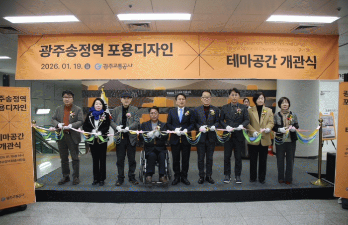 ±¤ÁÖ±³Åë°ø»ç(»çÀå ¹®¼®È¯)´Â 19ÀÏ ±¤»ê±¸ ±¤ÁÖ¼ÛÁ¤¿ª¿¡¼ ¡®Æ÷¿ë µðÀÚÀÎ(Inclusive Design)¡¯À» Àû¿ëÇÑ ±¤ÁÖ¼ÛÁ¤¿ª Å׸¶ °ø°£ °³°ü½ÄÀ» °³ÃÖÇß´Ù.