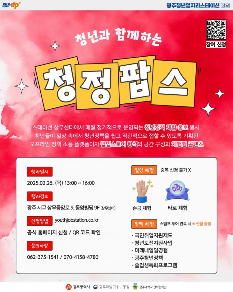 û³â¼ºÀå ÇÁ·ÎÁ§Æ®´Â °í¿ë³ëµ¿ºÎ¿Í ±¤ÁÖ±¤¿ª½Ã°¡ Çù·ÂÇÏ¿©, ¸¸ 15~39¼¼ ¹ÌÃë¾÷ û³âµéÀÌ ±¸Á÷À» Æ÷±âÇÏÁö ¾Êµµ·Ï Áö¿øÇÏ´Â »ç¾÷ÀÌ´Ù. »ç¾÷ÀÇ ÀÏȯÀÎ ±¤ÁÖû³âÀÏÀÚ¸®½ºÅ×À̼ÇÀº Ãë¾÷°ú â¾÷, ÀÏ»ó ȸº¹À» µ½´Â ´Ù¾çÇÑ ¼ºñ½º¸¦ Á¦°øÇÏ¿© û³âµéÀÌ ³ëµ¿½ÃÀå¿¡ ÁøÀÔÇÒ ¼ö ÀÖµµ·Ï µ½°í ÀÖ´Ù. Âü¿©¸¦ Èñ¸ÁÇϴ û³âÀº ȨÆäÀÌÁö ¹× ½Åû ¸µÅ©¸¦ ÅëÇØ Á¢¼öÇÒ ¼ö ÀÖ´Ù.