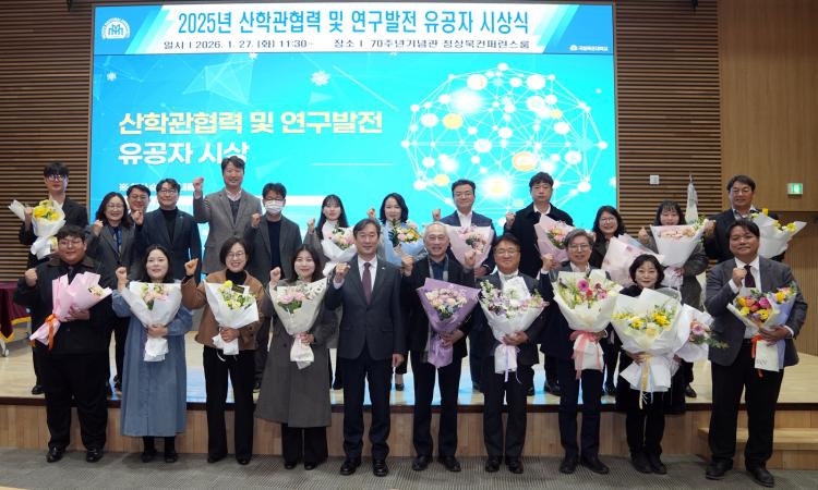 À̹ø ½Ã»ó½ÄÀº 2025³â ÇÑ ÇØ µ¿¾È ±¹Ã¥»ç¾÷ À¯Ä¡, ¿¬±¸ºñ ¼öÁÖ È®´ë µî »êÇаü Çù·Â°ú ¿¬±¸¹ßÀü¿¡ ±â¿©ÇÑ ±³Á÷¿øÀÇ °ø·Î¸¦ ÀÎÁ¤Çϰí, ¼º°úÁÖÀÇ ¹®È¸¦ È®»êÇÏ¿© ÇູÇÑ ´ëÇÐ ¹®È¸¦ Á¶¼ºÇϱâ À§ÇØ ¸¶·ÃµÆ´Ù.