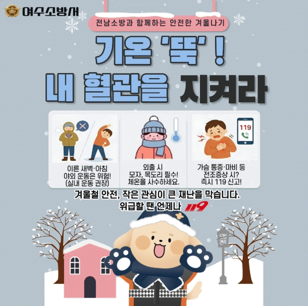 ¿©¼ö¼Ò¹æ¼´Â ½Ã¹ÎµéÀÌ ½±°Ô ÀÌÇØÇÏ°í ½ÇõÇÒ ¼ö ÀÖµµ·Ï Ä«µå´º½º¸¦ Á¦ÀÛÇØ ¹èÆ÷Çϸç, À̸¥ »õº®°ú ¾ÆÄ§ ½Ã°£´ëÀÇ ¹«¸®ÇÑ ¾ß¿ÜȰµ¿À» ÀÚÁ¦ÇÒ °ÍÀ» ´çºÎÇß´Ù. ¶ÇÇÑ ¿ÜÃ⠽ÿ¡´Â ¸ðÀÚ¿Í ¸ñµµ¸®¸¦ Âø¿ëÇØ ü¿Â À¯Áö¸¦ öÀúÈ÷ Çϰí, °¡½¿ ÅëÁõÀ̳ª ¸¶ºñ Áõ»ó µî ÀüÁ¶ Áõ»óÀÌ ³ªÅ¸³¯ °æ¿ì Áï½Ã 119¿¡ ½Å°íÇØ ½Å¼ÓÇÑ ÀÀ±Þóġ¸¦ ¹ÞÀ» °ÍÀ» °Á¶Çß´Ù.
