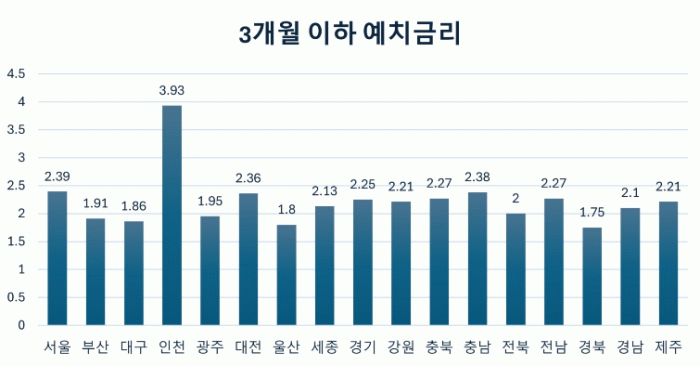 Áö¹æÁ¤ºÎ ±Ý°í ÀÌÀÚÀ²Àº ¿¹Ä¡ ±â°£¿¡ µû¶ó Â÷µî Àû¿ëµÈ´Ù. Áö¹æÁ¤ºÎ´Â ¿¹»êÀÇ Àû±â ÁýÇàÀ» À§ÇØ 6°³¿ù ÀÌÇÏ ´Ü±â ¿¹Ä¡ ºñÁßÀÌ ³ôÀº ¸¸Å, Àü³²µµÀÇ ´Ü±â ¿¹Ä¡ ±Ý¸® Àü±¹ »óÀ§±Ç ¼º°ú´Â Ä¡¹ÐÇÑ ±Ý¸® Çù»óÀÇ °á°ú·Î ºÐ¼®µÈ´Ù.