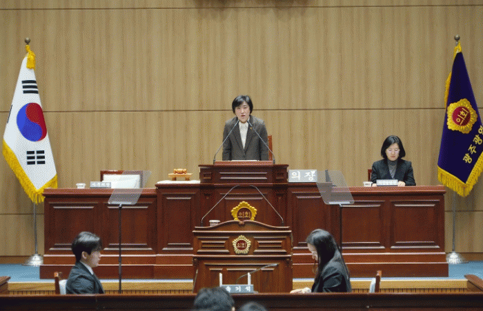 ½Å¼öÁ¤ ÀÇÀåÀº À̹ø ȸ±â´Â ½Ã¿Í ±³À°Ã»ÀÇ »õÇØ ÁÖ¿ä ¾÷¹«º¸°í¸¦ ûÃëÇÏ´Â ÇÑÆí, ±¤ÁÖ¡¤Àü³² ÇàÁ¤ÅëÇÕ°ú °ü·ÃÇÑ Áß´ëÇÑ °áÁ¤À» ¾ÕµÐ ¡®ÀÇȸÀÇ ½Ã°£¡¯ÀÓÀ» °Á¶Çß´Ù. ÀÇÀåÀº ÇàÁ¤ÅëÇÕ ÃßÁø °úÁ¤¿¡¼ ÀÇȸÀÇ ÀǰáÀº ÁÖ¹ÎÅõÇ¥¸¦ ´ë½ÅÇÏ´Â ÀýÂ÷·Î¼, ÀÇ¿ø °³°³ÀÎÀÇ Ç¥°á ÇϳªÇϳª°¡ 140¸¸ ½Ã¹ÎÀÇ ¶æÀ» ´ëÇ¥ÇÏ´Â ¸¸Å ¸·ÁßÇÑ Ã¥ÀÓÀÌ µû¸¥´Ù°í ¹àÇû´Ù.