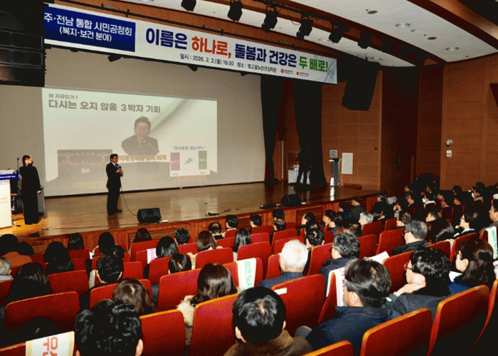 °±âÁ¤ ½ÃÀåÀº ¸ÕÀú ±¤ÁÖÀü³² ÅëÇÕ ÃßÁø °æ°ú, ÅëÇÕ¿¡ µû¸¥ Á¤ºÎ ƯÀü(Àμ¾Æ¼ºê), Ưº°¹ý ÁÖ¿ä ³»¿ë µîÀ» ¼³¸íÇß´Ù. ° ½ÃÀåÀº ƯÈ÷ ÀçÁ¤Áö¿ø¿¡ ´ëÇØ ¡°1+1Àº 2°¡ ¾Æ´Ï¶ó 10À» ¸¸µç´Ù´Â ¸¶À½À¸·Î ±¤ÁÖÀü³² ÅëÇÕÀ» ÃßÁøÇϰí ÀÖ´Ù. Á¤ºÎ ÀçÁ¤Áö¿øÀ¸·Î ¿¹»óµÇ´Â 20Á¶+¥á´Â 27°³ ½Ã¡¤±º¡¤±¸°¡ ´Ü¼øÈ÷ ³ª´² °®´Â °ÍÀÌ ¾Æ´Ï¶ó ¿ì¼±ÀûÀ¸·Î ÁÁÀº ÀÏÀÚ¸®¸¦ ¸¸µå´Â µ¥ ¾²Àδ١±¸ç ¡°ÅëÇÕÀº ¾î´À ÇÑÂÊÀÌ ¼ÕÇØ º¸´Â °ÍÀÌ ¾Æ´Ï¶ó ´õ¿í Ä¿Áö±â À§ÇØ ÇÏ´Â °ÍÀÌ´Ù. µ¹º½°ú °Ç° ¶ÇÇÑ ´õ¿í µÎÅÓ°Ô º¸ÀåµÉ °ÍÀÌ´Ù¡±°í °Á¶Çß´Ù.