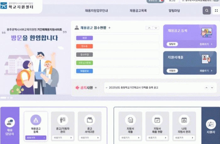 ±¤ÁÖ¼ºÎ±³À°Áö¿øÃ»Àº °¢ Çб³ÀÇ ¡ãä¿ë °ø°í ¡ã¼·ù Á¢¼ö ¹× ½É»ç ¡ãÇÕ°ÝÀÚ ¼·ù Çб³ ÀÌ¼Û µîÀ» Áö¿øÇØ ¿øÈ°ÇÑ Ã¤¿ëÀÌ ÀÌ·ïÁö°í ÀλçÇàÁ¤ÀÇ °øÁ¤¼ºµµ È®º¸ÇÒ °èȹÀÌ´Ù.