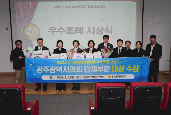 ½Å¼öÁ¤ ÀÇÀåÀº ¡°À̹ø ¼ö»óÀº ½Ã¹ÎÀÇ »îÀÇ Áú Çâ»ó°ú »çȸÀû ¹®Á¦ ÇØ°áÀ» ¸ñÇ¥·Î ÇÑ ±¤ÁÖ±¤¿ª½ÃÀÇȸÀÇ ÀÚÄ¡ÀÔ¹ý ³ë·ÂÀÌ ´ë¿ÜÀûÀ¸·Î ÀÎÁ¤¹ÞÀº ¶æ±íÀº ¼º°ú¡±¶ó¸ç, ¡°¾ÕÀ¸·Îµµ ÇöÀåÀÇ ¸ñ¼Ò¸®¸¦ ¹Ý¿µÇÑ ½ÇÈ¿¼º ÀÖ´Â Á¶·Ê Á¦Á¤°ú Á¦µµ °³¼±À» ÅëÇØ Áö¹æÀÚÄ¡ ¹ßÀü¿¡ ¼±µµÀûÀÎ ¿ªÇÒÀ» ÇØ ³ª°¡°Ú´Ù¡±°í ¹àÇû´Ù.