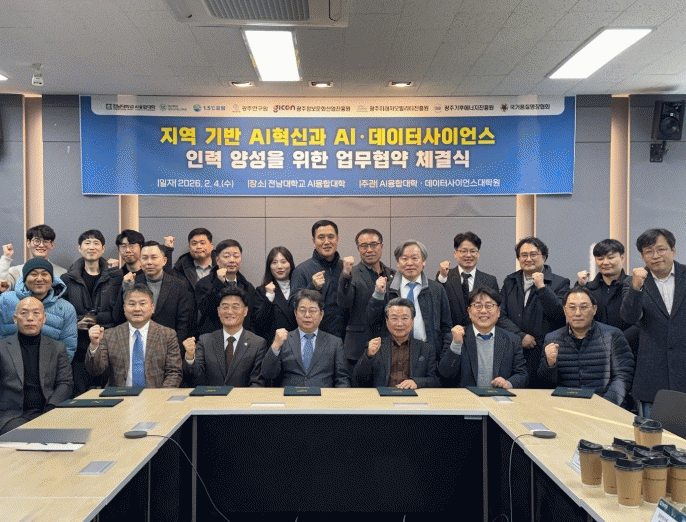 À̾î ÁøÇàµÈ ¾÷¹«Çù¾à ü°á½Ä¿¡¼´Â Àü³²´ëÇб³ AIÀ¶ÇÕ´ëÇС¤µ¥ÀÌÅÍ»çÀ̾𽺴ëÇпø°ú 7°³ Çù¾à ±â°üÀÌ ¡ãAI °ÅÁ¡´ëÇÐ °ü·Ã »ç¾÷ °øµ¿ ´ëÀÀ ¡ãAI¡¤µ¥ÀÌÅÍ»çÀ̾𽺠±â¹Ý À¶ÇÕÇü ½Ç¹« Àη ¾ç¼º ¡ã±³À°¡¤¼¼¹Ì³ª ¹× ±â¼ú ±³·ù ¡ã¹Ì·¡¸ðºô¸®Æ¼¡¤±âÈÄ¡¤¿¡³ÊÁö¡¤È¯°æ ºÐ¾ß AI ±â¹Ý ºñÁî´Ï½º ¸ðµ¨ ¹ß±¼ µî¿¡ Çù·ÂÇϱâ·Î ¶æÀ» ¸ð¾Ò´Ù.