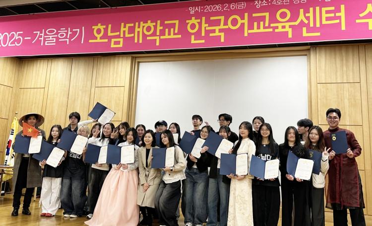 [ÅåÅå´º½º]È£³²´ëÇб³ Çѱ¹¾î±³À°¼¾ÅÍ(¼¾ÅÍÀå À±¿µ)´Â 6ÀÏ ¿ÀÀü 11½Ã 4È£°ü °´ç¿¡¼ ¿¬¼ö»ý 403¸í°ú Çѱ¹¾î °»ç 32¸í, ÇàÁ¤Á÷¿ø µî 440¿©¸íÀÌ Âü¼®ÇÑ °¡¿îµ¥ ¡®2025Çг⵵ °Ü¿ïÇб⠼ö·á½Ä¡¯À» °®°í 2025Çг⵵ °Ü¿ïÇбâ Á¤±Ô ¿¬¼ö°úÁ¤À» ¸¶¹«¸®Çß´Ù.