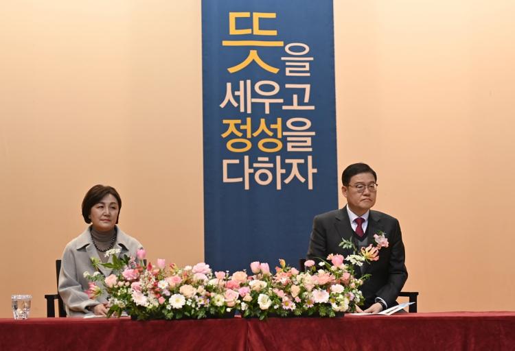 ¹Ú»óö ÃÑÀåµµ Ãà»ç¸¦ ÅëÇØ ¡°¿ì¸® ´ëÇÐÀÇ ¿ª»ç¿Í Çö½ÇÀ» ²ç¶Õ°í °è½Ã´Â ÀÌ»çÀå´ÔÀÇ ¸®´õ½Ê, dzºÎÇÑ °æÇè°ú ÅëÂûÀº Áö¿ª»çȸ ¹ßÀüÀ» ¼±µµÇÏ°í ½Ã´ë¸¦ ¾Õ¼°¡´Â Çõ½ÅÀÇ ÁÖ¿ªÀ¸·Î À̲ô´Â µçµçÇÑ ÀÌÁ¤Ç¥°¡ µÉ °Í¡±À̶ó¸é¼ ¡°ÀÌ»çÀå´ÔÀÇ ÃëÀÓÀ» ±¸½ÉÁ¡ »ï¾Æ ´ëÇÐ ±¸¼º¿øµé ¸ðµÎ°¡ ÁöÇý¸¦ ¸ðÀ¸°í ÇѸ¶À½ÀÌ µÅ¼ ¡®ÇлýÀÌ ÇູÇÑ ´ëÇС¯À» ¸¸µé¾î ³ª°¡´Âµ¥ ÈûÀ» ½ñ°Ú´Ù¡±´Â ÀÇÁö¸¦ ¹àÇû´Ù.