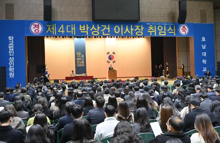 [ÅåÅå´º½º]Çб³¹ýÀÎ ¼ºÀÎÇпø È£³²´ëÇб³ ¹Ú»ó°Ç(ÚÓßÓËï) Á¦ 4´ë ÀÌ»çÀåÀÌ 2¿ù 10ÀÏ ÃëÀÓ½ÄÀ» °®°í ¡°È£³²´ëÇб³°¡ Áö¿ªÀÇ ³»ÀÏÀ» Ã¥ÀÓÁú ÀÎÀ縦 ±â¸£´Âµ¥ ÃÖ¼±ÀÇ ³ë·ÂÀ» ±â¿ï¿© Áö¿ª»çȸ°¡ ½Å·ÚÇÏ´Â µçµçÇÑ µ¿¹ÝÀÚ°¡ µÇ°Ú´Ù¡±°í ´ÙÁüÇß´Ù.