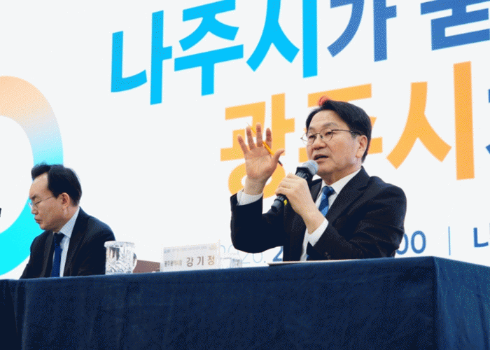 °±âÁ¤ ±¤ÁÖ½ÃÀåÀº ¡°ÅëÇÕÀº ¿ì¸® ¸ðµÎ¿¡°Ô ¹Ýµå½Ã ÀÌÀÍÀ̶ó´Â Á¡À» ÀڽŠÀÖ°Ô ¸»¾¸µå¸°´Ù¡±¸ç ¡°³ªÁÖ´Â Çõ½Åµµ½Ã¸¦ Áß½ÉÀ¸·Î ¿¡³ÊÁö¡¤±³À°¡¤¿¬±¸ ±â´ÉÀÌ ÁýÀûµÈ °Á¡À» °¡Áö°í ÀÖ´Ù. ÅëÇÕÀº ³ªÁÖÀÇ À§»óÀ» °ÈÇϰí, ±¹°¡±ÕÇü¹ßÀü°ú »îÀÇ ÁúÀ» ³ôÀÌ´Â ÀüȯÁ¡ÀÌ µÅ¾ß ÇÑ´Ù¡±°í ¸»Çß´Ù.