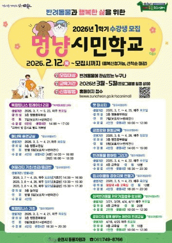 ¼øÃµ½Ã ¸Û³É½Ã¹ÎÇб³´Â ¹Ý·Áµ¿¹° Æ®·»µå¿¡ ¸ÂÃá ´Ù¾çÇÑ ÇÁ·Î±×·¥À¸·Î ³ôÀº È£ÀÀÀ» ¾òÀ¸¸ç, Ÿ ÁöÀÚü¿¡¼ º¥Ä¡¸¶Å·À» À§ÇØ ¹æ¹®ÇÏ´Â ¹Ý·Áµ¿¹° ½Ã¹Î±³À° ´ëÇ¥¸ðµ¨·Î ÀÚ¸®¸Å±èÇϰí ÀÖ´Ù.