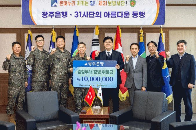À̳¯ Àü´Þ½Ä¿¡´Â ±èÁ¾¹Î ±¤ÁÖÀºÇà ºÎÇàÀå°ú ±èµµ¿ Á¦31º¸º´»ç´Ü »ç´ÜÀå ¹× °ü°èÀÚµéÀÌ Âü¼®ÇßÀ¸¸ç, Áö¿ª ¾Èº¸¸¦ À§ÇØ Çå½ÅÇϰí ÀÖ´Â À庴µéÀÇ ³ë°í¿¡ ±íÀº °¨»çÀÇ ¶æÀ» ÀüÇÏ°í µû¶æÇÑ °Ý·ÁÀÇ ½Ã°£À» °¡Á³´Ù. Àü´ÞµÈ À§¹®±ÝÀº À庴µéÀÇ º¹Áö Çâ»ó°ú »ç±â ÁøÀÛÀ» À§ÇÑ ´Ù¾çÇÑ Áö¿ø¿¡ »ç¿ëµÉ ¿¹Á¤ÀÌ´Ù.