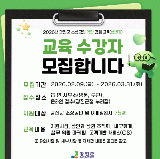 ¹ÚÁøÈñ Áö¿ª°æÁ¦¿¬°áÆÀÀåÀº ¡°¼Ò»ó°øÀÎÀÌ ¿ôÀ¸¸ç Àå»çÇÒ ¼ö Àִ ȯ°æÀ» ¸¸µé±â À§ÇØ ¸ÂÃãÇü ±³À° Ä¿¸®Å§·³À» ¸¸µé¾î Áö¼ÓÀûÀ¸·Î ÁøÇàÇϰڴ١±¸ç ¸¹Àº Âü¿©¸¦ µ¶·ÁÇß´Ù. ½ÅûÀº¿À´Â 3¿ù 31ÀϱîÁö °¡´ÉÇϸç ÀÚ¼¼ÇÑ »çÇ×Àº °Áø±º ȨÆäÀÌÁö¸¦ È®ÀÎÇÏ¸é µÈ´Ù.