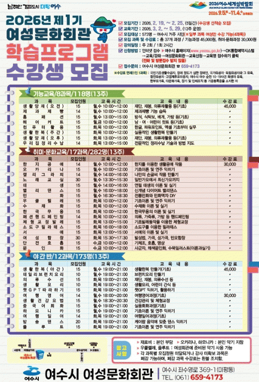 ¿©¼ö½Ã¿¡ °ÅÁÖÇÏ´Â ½Ã¹ÎÀº ´©±¸³ª 1Àδç 2°ú¸ñ±îÁö ½ÅûÇÒ ¼ö ÀÖÀ¸¸ç ¿©¼ö½Ã ´©¸®Áý ¡®OKÅëÇÕ¿¹¾à½Ã½ºÅÛ¡¯ ³» ±³À°/°Á¿¡¼ ¿©¼º¹®Èȸ°ü ±³À°À» ½ÅûÇÏ¸é µÈ´Ù.