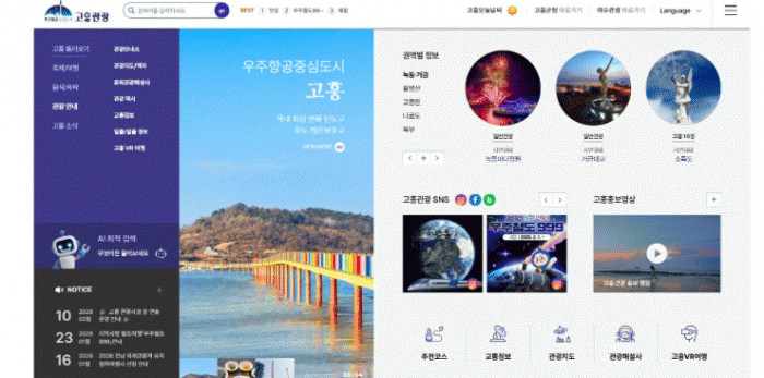 °íÈï°ü±¤ °ø½Ä ȨÆäÀÌÁö´Â Áö¿ªÀÇ ´ëÇ¥ °ü±¤ÀÚ¿øºÎÅÍ ¼÷¹Ú¡¤À½½Ä¡¤±³Åë Á¤º¸±îÁö ÇÑ´«¿¡ È®ÀÎÇÒ ¼ö ÀÖµµ·Ï ±¸¼ºµÅ ÀÖ´Ù. ƯÈ÷ ¿©Çà Áغñ ´Ü°è¿¡¼ºÎÅÍ ÇöÀå ¹æ¹® ÀÌÈıîÁö Æø³Ð°Ô Ȱ¿ëÇÒ ¼ö ÀÖ´Â °ÍÀÌ Æ¯Â¡ÀÌ´Ù.