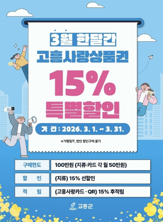 °ø¿µ¹Î °íÈﱺ¼ö´Â ¡°»õÇØ¸ÂÀÌ °íÈï»ç¶û»óǰ±Ç Ưº°ÇÒÀÎ Çà»ç¿¡ º¸³»ÁֽŠ¶ß°Å¿î ¼º¿ø¿¡ ÈûÀÔ¾î 3¿ù¿¡µµ Ưº°ÇÒÀÎÀ» ¿¬ÀåÇϱâ·Î Çß´Ù¡±¸ç ¡°¾ÕÀ¸·Îµµ Áö¿ª°æÁ¦¿¡ Ȱ·ÂÀ» ºÒ¾î³ÖÀ» ¼ö ÀÖ´Â ´Ù¾çÇÑ ¹Î»ý°æÁ¦ ´ëÃ¥À» Àû±Ø ÃßÁøÇϰڴ١±°í ¸»Çß´Ù.