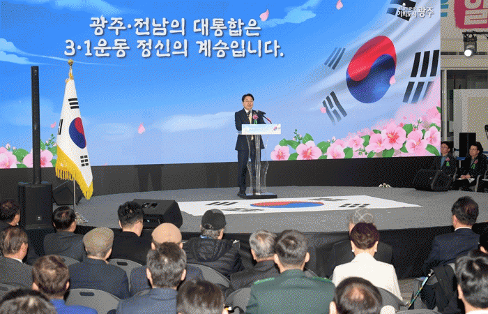 °±âÁ¤ ½ÃÀåÀº À̳¯ ¿ÀÀü 10½Ã ±¤ÁÖ½Ãû ½Ã¹ÎȦ¿¡¼ ¿¸° ¡®Á¦107ÁÖ³â 3¡¤1Àý ±â³ä½Ä¡¯¿¡¼ ±â³ä»ç¸¦ ÅëÇØ ¡°3¡¤1¿îµ¿ÀÇ ¿ÀÁ÷ ´Ü ÇϳªÀÇ ÀÌÀ¯´Â ´ëÇѵ¶¸³À̾úµí, Áö±Ý ¿ì¸®°¡ ÅëÇÕÀ» ÇÏ´Â ÀÌÀ¯´Â ´Ü Çϳª, ÀÏÀÚ¸®¿Í ±ÕÇü¹ßÀüÀÌ´Ù¡±°í °Á¶Çß´Ù.