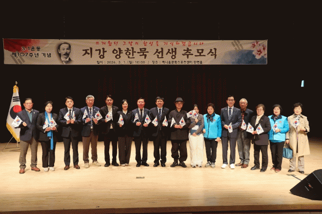 Ã߸ðÇà»ç´Â ¡ãÁö° ¾çÇѹ¬ ¼±»ýÀÇ ¾à·Â ¼Ò°³ ¡ãµ¶¸³¼±¾ð¼ ³¶µ¶ ¡ãÃ߸ð»ç ¡ã3¡¤1Àý ³ë·¡ Á¦Ã¢ ¡ã¸¸¼¼»ïâ ¼øÀ¸·Î ÁøÇàµÆ´Ù.