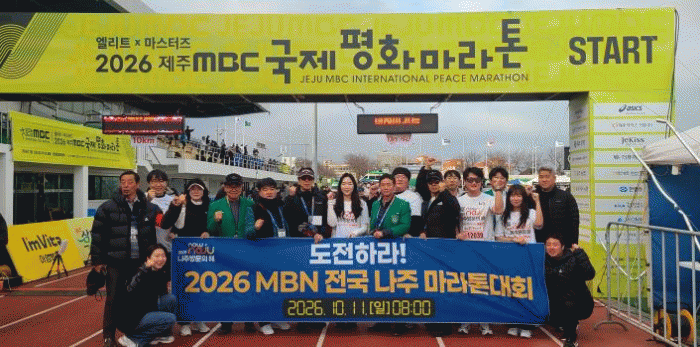 Áö³ 2¿ù 21ÀÏ ¿¸° ¡®2026 Á¦ÁÖMBC±¹Á¦Æòȸ¶¶óÅæ´ëȸ¡¯¿¡¼ ³ªÁֽà À°»ó¼±¼ö´Ü°ú üÀ°ÁøÈï°ú Á÷¿øµéÀº ¡®2026 ³ªÁֹ湮ÀÇ ÇØ¡¯¿Í ¡®2026 Àü±¹ ³ªÁÖ ¸¶¶óÅæ´ëȸ¡¯¸¦ È«º¸ÇÏ´Â ¹®±¸¿Í QRÄڵ尡 ´ã±ä Ƽ¼ÅÃ÷¸¦ Âø¿ëÇϰí 10km ÄÚ½º¸¦ ¿ÏÁÖÇϸç Àü±¹ ·¯³ÊµéÀ» ´ë»óÀ¸·Î ÇöÀå È«º¸¸¦ ÆîÃÆ´Ù.
