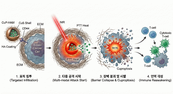 ¿¬±¸ÆÀÀº ÀÌ °ß°íÇÑ À庮À» Çã¹°±â À§ÇØ ³ª³ë°øÇаú Á¾¾ç¸é¿ªÇÐÀ» À¶ÇÕÇÑ 'ÇÙ-²®Áú(Core-Shell) ±¸Á¶ÀÇ ±¸¸®-³ª³ëÇ÷§Æû'À» µ¶Ã¢ÀûÀ¸·Î ¼³°èÇß´Ù.