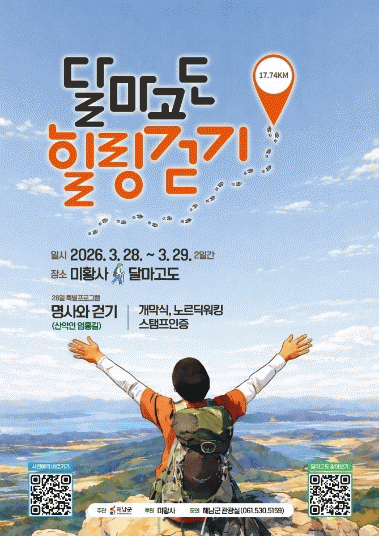 ¼ÛÁö¸é ´Þ¸¶»ê ÀÏ¿ø¿¡¼ ¿¸®´Â¡®2026 ¶¥³¡Çس² ´Þ¸¶°íµµ Èú¸µ°È±â¡¯´Â¡®°È´Â ¼ø°£ÀÌ °ð Èú¸µ¡¯À̶ó´Â Å׸¶·Î °È±â Áß½ÉÀÇ ÇÁ·Î±×·¥À» ÅëÇØ ¹æ¹®°´µéÀÌ ´Þ¸¶°íµµ õÇýÀÇ ÀÚ¿¬ ¼Ó¿¡¼ °ÉÀ¸¸ç ¸ö°ú ¸¶À½À» Èú¸µ ÇÒ ¼ö ÀÖ´Â ±âȸ¸¦ Á¦°øÇÒ °èȹÀÌ´Ù.