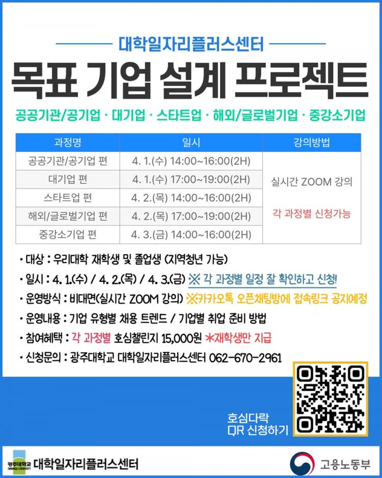 À̹ø Ư°Àº Ãë¾÷ Áغñ °úÁ¤¿¡¼ Áß¿äÇÑ ¿ä¼ÒÀÎ ¸ñÇ¥ ±â¾÷ ¼³Á¤°ú ±â¾÷ À¯Çüº° ä¿ë Àü·« ÀÌÇØ¸¦ µ½±â À§ÇØ 4¿ù 1ÀϺÎÅÍ »çÈê°£ ¸ÅÀÏ µÎ Â÷·Ê(14~16½Ã, 17~19½Ã) ½Ç½Ã°£ ZOOMÀ¸·Î ÁøÇàÇÑ´Ù.