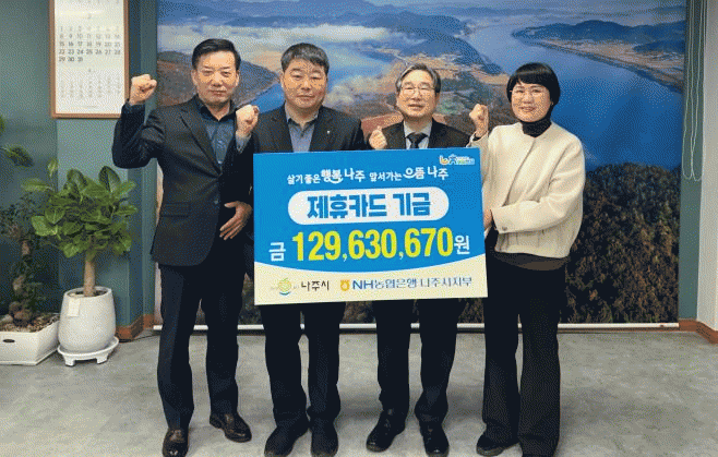 °»ó±¸ ³ªÁÖ ºÎ½ÃÀåÀº ¡°±â±ÝÀº ½Ã¹Î º¹Áö ÁõÁø¿¡ Áß¿äÇÑ Àç¿øÀ¸·Î Ȱ¿ëµÉ °Í¡±À̶ó¸ç ¡°¸Å³â Á¦ÈÞÄ«µå ±â±Ý°ú ´õºÒ¾î Áö¿ª»çȸ ¹ßÀüÀ» À§ÇÑ Çù·Â ÆÄÆ®³Ê·Î¼ ÇÔ²²ÇØÁØ NH³óÇù ³ªÁÖ½ÃÁöºÎ¿¡ °¨»çÀÇ ¸»À» ÀüÇÑ´Ù¡±°í ÀüÇß´Ù.