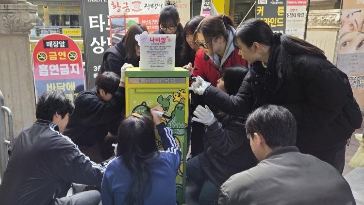 ÇлýµéÀº Çϳ² ÄÝ·³¹ö½º ¿ìüÅëÀÇ »öÀÌ ¹þ°ÜÁö°Å³ª ¿À¿°µÈ ºÎºÐÀÇ »öÀ» ´Ù½Ã Ä¥ÇÏ´Â µîÀÇ º¸¼öÀÛ¾÷À» ¹ú¿´´Ù.