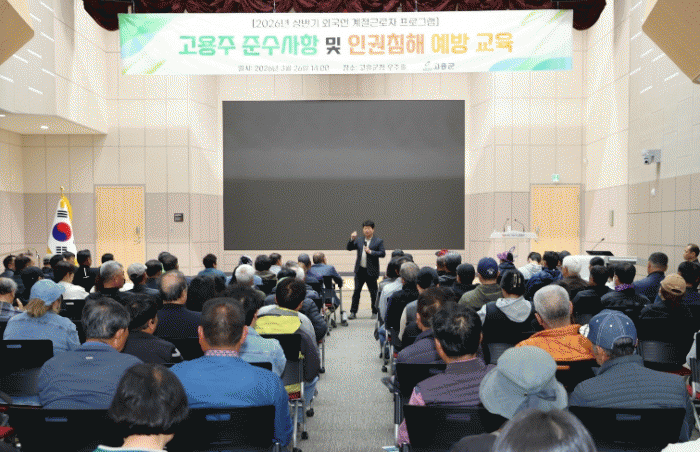 °ø¿µ¹Î °íÈﱺ¼ö´Â ¡°¿Ü±¹ÀÎ °èÀý±Ù·ÎÀÚ´Â ¿ì¸® Áö¿ª ³ó¾î¾÷À» ÁöÅÊÇÏ´Â ¼ÒÁßÇÑ ±¸¼º¿øÀÌÀÚ µ¿¹ÝÀÚ¡±¶ó¸ç ¡°ÇÔ²² ÀÏÇÏ°í »ì¾Æ°¡´Â ÀÌ¿ôÀ¸·Î¼ ¾ÈÁ¤ÀûÀÎ ±Ù·Îȯ°æÀ» Á¶¼ºÇϰí, Á¸Áß°ú ¹è·Á°¡ ÀÚ¸® Àâ´Â °í¿ë ¹®È¸¦ ¸¸µé¾î °¡´Â °ÍÀÌ ¹«¾ùº¸´Ù Áß¿äÇÏ´Ù¡±°í ¸»Çß´Ù.