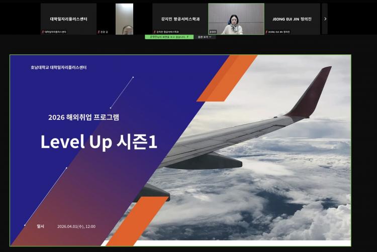 [ÅåÅå´º½º]È£³²´ëÇб³ ´ëÇÐÀÏÀÚ¸®Ç÷¯½º¼¾ÅÍ(¼¾ÅÍÀå ±èÀº¾Æ)´Â 4¿ù 1ÀÏ ¡®2026 Level Up ½ÃÁð1 ÇØ¿ÜÃë¾÷ ÇÁ·Î±×·¥¡¯ Âü¿©ÀÚ 20¸íÀ» ´ë»óÀ¸·Î ZOOMÀ» Ȱ¿ëÇÑ ¿Â¶óÀÎ ¿À¸®¿£Å×À̼ÇÀ» ÁøÇàÇß´Ù. À̳¯ ¿À¸®¿£Å×À̼ǿ¡¼´Â ÇÁ·Î±×·¥ ¿î¿µ ¹æ¹ý ¾È³»¿Í ÇÔ²² ¿ùµåÀâ(World Job) ¹× Á¤ºÎ Áö¿ø »ç¾÷ µî ÇØ¿Ü ÁøÃâ °ü·Ã Á¤º¸¸¦ Á¦°øÇß´Ù.