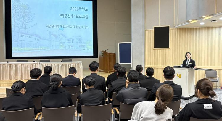 À̹ø Çà»ç´Â È£½ºÇÇÅ»¸®Æ¼(ȯ´ë»ê¾÷) ºÐ¾ß µî Àü°ø °ü·Ã ´Ù¾çÇÑ Á÷¹«·Î ÁøÃâÇØ źźÇÑ Ä¿¸®¾î¸¦ ½×¾Æ°¡°í ÀÖ´Â Á¹¾÷»ý ¼±¹èµéÀ» ÃÊÃ»ÇØ ÀÌ·ïÁ³´Ù. ¿ì¼ö Ãë¾÷ ¼±¹èµéÀº »ý»ýÇÑ »ê¾÷ ÇöÀå °æÇèÀ» ¹ÙÅÁÀ¸·Î, Àڽŵ鸸ÀÇ ´ëÇÐ »ýȰ ³ëÇÏ¿ìºÎÅÍ Á÷¹« Ž»ö, À̷¼ ¹× ¸éÁ¢ Áغñ °úÁ¤, ÀÔ»ç ÈÄ °Þ°Ô µÇ´Â Çö½ÇÀûÀÎ ¿¡ÇǼҵå±îÁö ¾Æ³¦¾øÀÌ °øÀ¯Çϸç ÈĹèµéÀÇ À̸ñÀ» ÁýÁß½ÃÄ×´Ù.