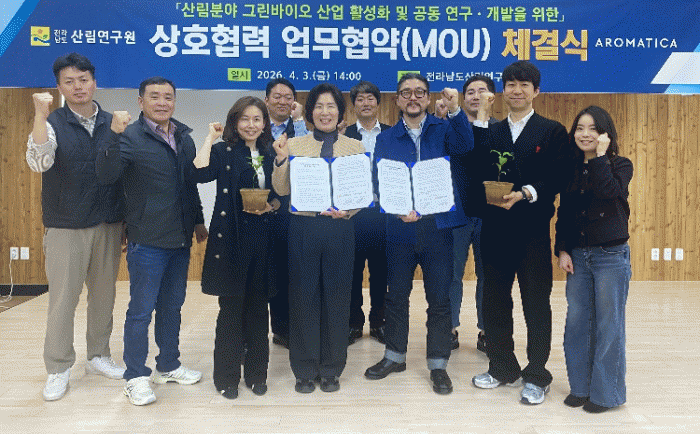 ¿Àµæ½Ç Àü³²µµ»ê¸²¿¬±¸¿øÀåÀº ¡°À̹ø Çù¾àÀº ¾Æ·Î¸¶Æ¼Ä«ÀÇ ±â¼ú·Â°ú ±Û·Î¹ú ½ÃÀå ÁøÃâ ±â¹Ý¿¡ Àü³²ÀÇ »ê¸²ÀÚ¿ø ¿¬±¸ ¿ª·®ÀÌ °áÇÕÇÑ »ç·Ê·Î K-¾Æ·Î¸¶Å×¶óÇÇ »ê¾÷ ±â¹ÝÀ» ±¸ÃàÇÏ´Â Áß¿äÇÑ °è±â°¡ µÉ °Í¡±À̶ó¸ç ¡°Àü³² »ê¸²ÀÚ¿øÀÇ »ê¾÷ȸ¦ ÅëÇØ ¼öÀÔ ÀÇÁ¸ ÈÀåǰ ¿ø·á¸¦ ±¹»ê ¼ÒÀç·Î ÀüȯÇϰí K-ºäƼ »ê¾÷ÀÇ °æÀï·ÂÀ» °ÈÇϰڴ١±°í ¸»Çß´Ù.