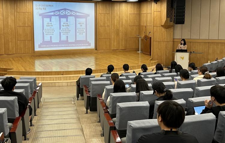 À̹ø ¼³¸íȸ´Â RISE(Áö¿ªÇõ½ÅÁ᫐ ´ëÇÐÁö¿øÃ¼°è) »ç¾÷ÀÇ ÀÏȯÀ¸·Î ÁøÇàµÇ¾úÀ¸¸ç ĸ½ºÅæµðÀÚÀÎÀº ÇлýµéÀÌ Àü°ø °úÁ¤¿¡¼ ½ÀµæÇÑ ÀÌ·ÐÀ» ¹ÙÅÁÀ¸·Î »ê¾÷ü¿Í Áö¿ª »çȸ°¡ Á÷¸éÇÑ ½ÇÁúÀûÀÎ ¹®Á¦¸¦ Áø´ÜÇϰí, À̸¦ ÇØ°áÇϱâ À§ÇÑ ÀÛǰÀ̳ª ¼ºñ½º¸¦ Á÷Á¢ ±âȹ¡¤¼³°è¡¤Á¦ÀÛÇϴ âÀÇ À¶ÇÕÇü ±³À°°úÁ¤ÀÌ´Ù.