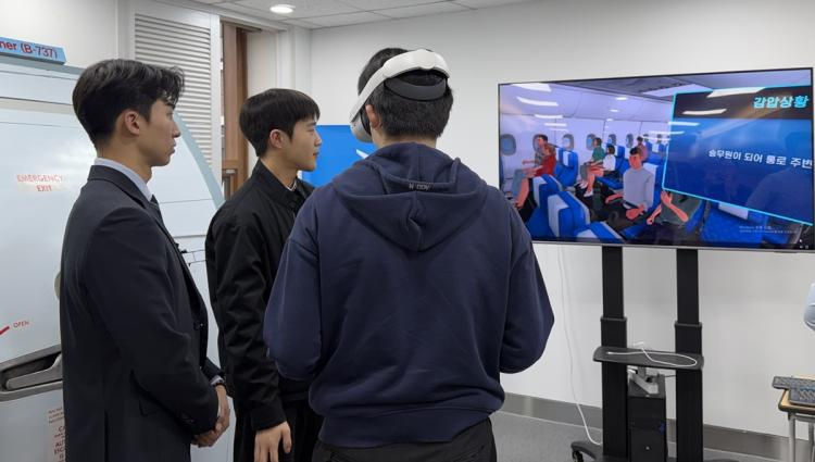 ¿À´Ã Çà»ç¿¡ Âü¿©ÇÑ ±¤ÁÖ µ¿¼º°íµîÇб³ ÇлýµéÀº Ç×°ø ¾ÈÀüÀ» ÁÖÁ¦·Î ¡®½Â¹«¿ø ¾÷¹«¡¯¿Í ¡®Ç×°øÀÇ ¿ª»ç¡¯¿¡ ´ëÇÑ ±³À°¿¡ Âü¿©Çß´Ù. ƯÈ÷, Åͺ深½º »óȲ¿¡¼ÀÇ ±â³» ¹æ¼Û ÀýÂ÷¿Í ´ëÀÀ ¹æ¹ýÀ» ¹è¿ì¸ç ½Ç¹«ÀûÀÎ Áö½ÄÀ» ÀÍÇû°í, VR üÇèÀ» ÅëÇØ ½ÇÁ¦ »óȲÀ» °£Á¢ÀûÀ¸·Î °æÇèÇß´Ù.