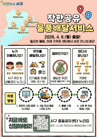 ¼±¸´Â ÇöÀç ÈÁ¤2µ¿, ÈÁ¤4µ¿, µ¿Ãµµ¿, ³ó¼º1µ¿, ¼Ã¢µ¿ µî °ü³» 5°³¼Ò¿¡ ¹°Ç°°øÀ¯¼¾Å͸¦ ±¸Ãࡤ¿î¿µ ÁßÀ̸ç ÁֹΠ´©±¸³ª »ýȰ¿ëǰÀ» º¸´Ù ½±°í Æí¸®ÇÏ°Ô ÀÌ¿ëÇÒ ¼ö ÀÖ´Â ±â¹ÝÀ» ¸¶·ÃÇß´Ù. À̹ø Äü ½¦¾î ¼ºñ½º´Â ÁÖ¹ÎÀÌ ¹°Ç°°øÀ¯¼¾ÅÍ ´©¸®ÁýÀ» ÅëÇØ ¿øÇÏ´Â ¹°Ç°À» ½ÅûÇϸé 3ÀÏ À̳»¿¡ ÀÌ¿ëÀÚ°¡ ÁöÁ¤ÇÑ °¡Àå °¡±î¿î °øÀ¯¼¾ÅÍ·Î ¹°Ç°À» À̵¿¡¤¹è´ÞÇØÁÖ´Â ¹æ½ÄÀ¸·Î ¿î¿µµÈ´Ù. ÀÌ¿¡ µû¶ó ÁֹεéÀº ¿©·¯ ¼¾Å͸¦ Á÷Á¢ ã¾Æ´Ù´Ò ÇÊ¿ä ¾øÀÌ »ýȰ±Ç ³» °¡±î¿î °ÅÁ¡¿¡¼ Æí¸®ÇÏ°Ô ¹°Ç°À» ¼ö·ÉÇÒ ¼ö ÀÖ´Ù.