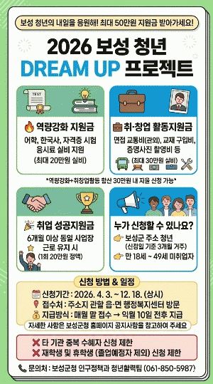 »ç¾÷ ½ÅûÀº 2026³â 12¿ù 18ÀϱîÁö ÁÖ¼ÒÁö °üÇÒ À¾¸é ÇàÁ¤º¹Áö¼¾ÅÍ¿¡¼ °¡´ÉÇϸç, ÀÚ°Ý¿ä°Ç ½É»ç¸¦ °ÅÃÄ ¿¹»ê ¹üÀ§ ³» ¼±Âø¼øÀ¸·Î Áö¿øµÈ´Ù. ´Ü, µ¿ÀÏ Ç׸ñ¿¡ ´ëÇØ Ÿ ±â°ü Áߺ¹ Áö¿øÀº Á¦ÇѵǸç, ÀϺΠ´ë»óÀÚ´Â ½ÅûÀÌ Á¦ÇÑµÉ ¼ö ÀÖ´Ù.