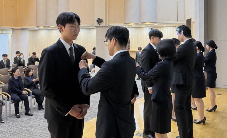 À̹ø Çà»ç´Â Áö³´Þ Çлý °³°³ÀÎÀÇ Ã¼Çü¿¡ ¸ÂÃç Á¦ÀÛ¡¤¹èºÎµÈ 'À¯´ÏÆû Âøº¹½Ä'ÀÇ ¿¬Àå¼±»ó¿¡¼ ÁøÇàµÈ ÇаúÀÇ ºû³ª´Â °íÀ¯ ÀüÅë Çà»ç·Î, ÀÚ½ÅÀÇ ¸ö¿¡ ²À ¸Â´Â ´ÜÁ¤ÇÑ ¸ÂÃãÇü À¯´ÏÆûÀ» óÀ½À¸·Î °ø½Ä ¼®»ó¿¡ °®Ãç ÀÔ°í µîÀåÇÑ ÇлýµéÀÇ Ç¥Á¤¿¡´Â ¿¹ºñ ¼ºñ½º Àü¹®°¡·Î¼ÀÇ ¼³·½°ú ±äÀå°¨ÀÌ ±³Â÷Çß´Ù.