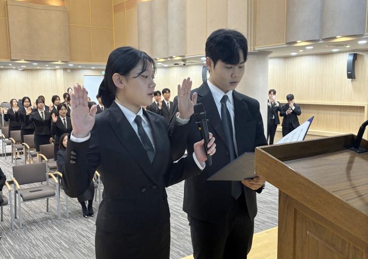 À̳¯ ¼±¾ð½Ä¿¡¼ ÇлýµéÀº ¡®¼ºñ½ºÀÇ »ý¸íÀº Ä£Àý°ú Á¤¼º¡¯À̶ó´Â ½ºÅ¸Æ²·¯ÀÇ Á¤½ÅÀ» °¡½¿¿¡ »õ±â¸ç, ¹Ì·¡ È£½ºÇÇÅ»¸®Æ¼(Hospitality) ¹× MICE »ê¾÷À» À̲ø¾î°¥ âÁ¶Àû ¸®´õ°¡ µÇ°Ú´Ù´Â ¾ö¼÷ÇÑ ¼±¼¸¦ ³¶µ¶Çß´Ù.